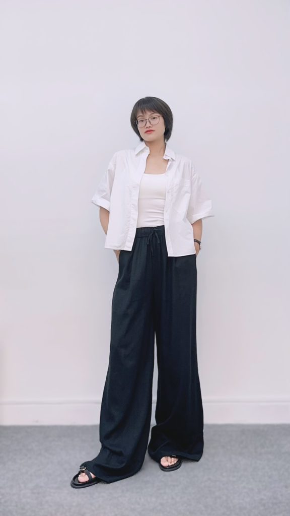 Áo sơmi linen thường có phom rộng. Những chiếc áo này tạo khoảng cách giữa trang phục và cơ thể, giúp làm mát tốt hơn. Bạn nên kết hợp cùng quần jeans hoặc chân váy có độ ôm vừa phải. Cách phối này sẽ giúp tổng thể trông gọn gàng, chỉn chu. Ngoài gam màu trắng, màu be cơ bản, tông màu pastel làm dịu đi cơn nóng mùa hè một cách hiệu quả.
