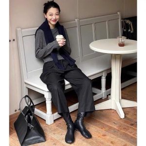 Set đồ tối giản với tông màu xám và đen là lựa chọn hoàn hảo cho những cô nàng yêu thích sự thanh lịch, thoải mái nhưng vẫn muốn giữ vẻ thời trang trong tiết trời se lạnh.