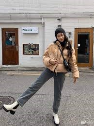- Mix đồ với áo phao ngắn và quần jeans
