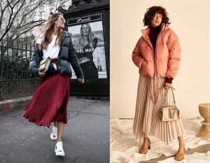 - Kết hợp áo phao ngắn với chân váy dài