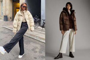Phối chiếc áo khoác phao ngắn cùng quần ống rộng cũng là một cách mix đồ không tệ mà các nàng có thể thử. Điều cần lưu ý là thay vì chọn áo phao dáng dài, chị em nên ưu tiên áo phao dáng ngắn, sự kết hợp này giúp vóc dáng thêm phần cao ráo, bạn cài khuy kín mít hay đi giày bệt cũng không lo bị dìm chiều cao. Chưa hết, nếu kết hợp màu sắc khéo léo, chẳng hạn như mix áo phao màu pastel với quần ống rộng sáng màu, vẻ ngoài của chị em còn được hack tuổi. Một chiếc áo phao croptop kết hợp với quần ống rộng cạp cao. Không chỉ giúp cho bạn che khuyết điểm cơ thể, kéo dài đôi chân mà còn cực thời trang và cá tính.